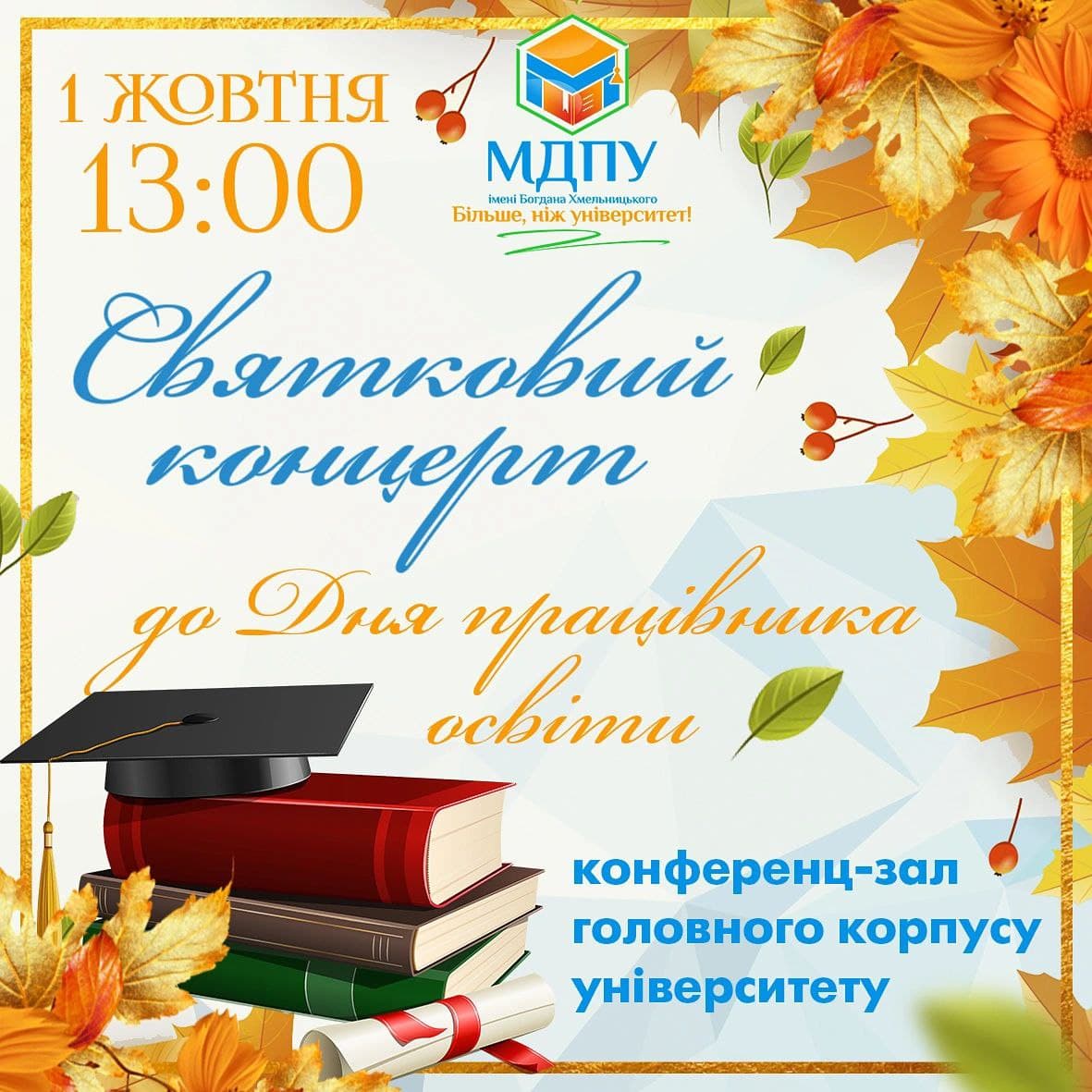 Запрошуємо усю педагогічну родину Мелітопольського державного педагогічного університету імені Богдана Хмельницького на урочистий концерт, наповнений теплом, радістю та щастям.