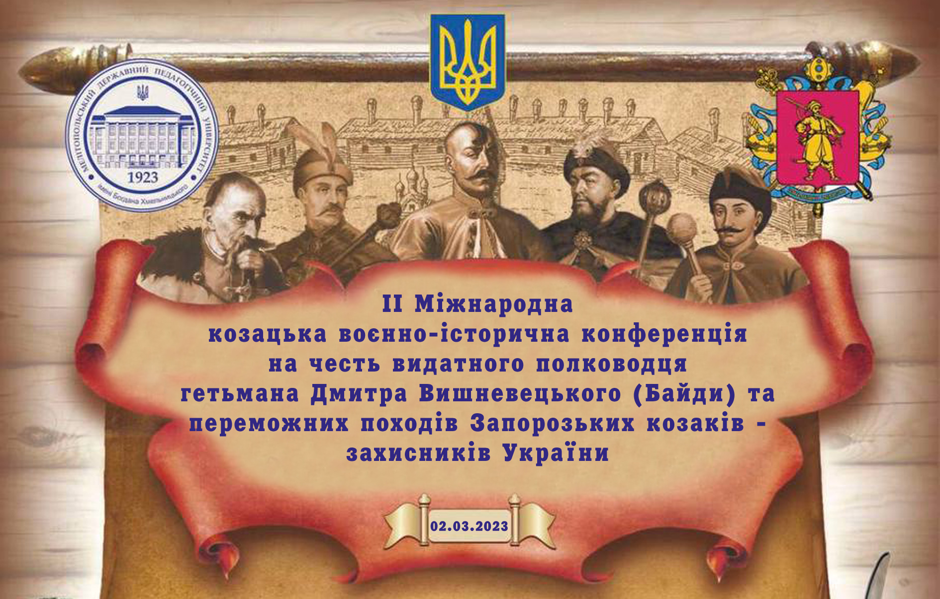 На підтримку державної Стратегії національно-патріотичного виховання молоді України, згідно плану просвітницької діяльності для студентів і учасників АТО запрошуємо Вас прийняти участь у ІІ Міжнародній козацькій воєнно-історичній конференції на честь видатного полководця гетьмана Дмитра Вишневецького (Байди) та переможних походів Запорозьких козаків – захисників України.