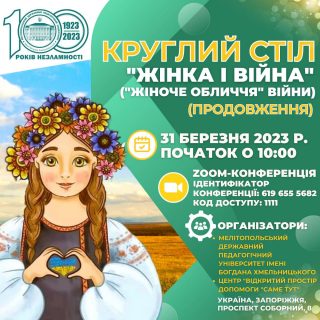 31 березня о 10:00 відбудеться друге засідання круглого столу «Жінка і війна («жіноче обличчя» війни)»!