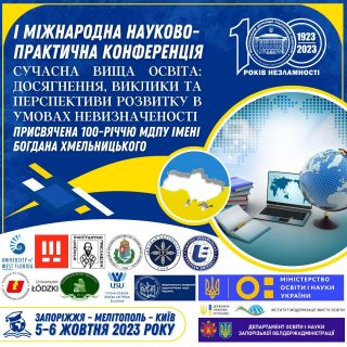 Запрошуємо взяти участь у І МІЖНАРОДНІЙ НАУКОВО-ПРАКТИЧНІЙ КОНФЕРЕНЦІЇ «СУЧАСНА ВИЩА ОСВІТА: ДОСЯГНЕННЯ, ВИКЛИКИ ТА ПЕРСПЕКТИВИ РОЗВИТКУ В УМОВАХ НЕВИЗНАЧЕНОСТІ», присвяченій 100-річчю МДПУ імені Богдана Хмельницького!