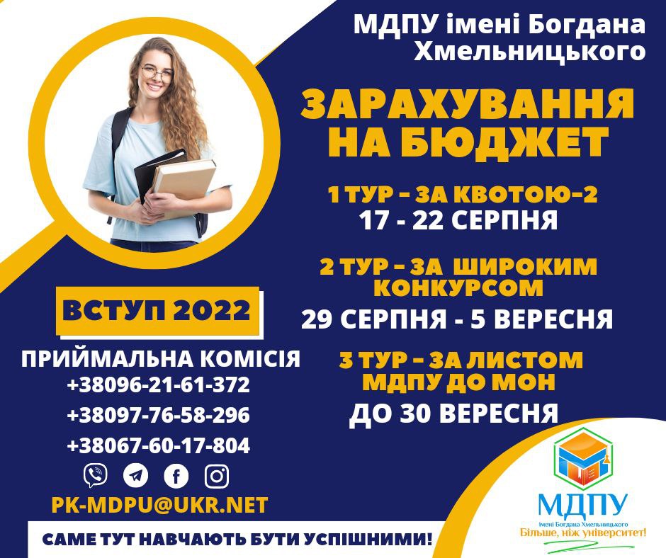 Пам’ятайте, КОЖЕН ВСТУПНИК, який знаходиться НА ОСОБЛИВО НЕБЕЗПЕЧНІЙ ТЕРИТОРІЇ отримає СВОЄ БЮДЖЕТНЕ МІСЦЕ у МДПУ імені Богдана Хмельницького!